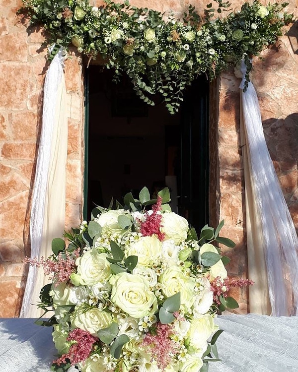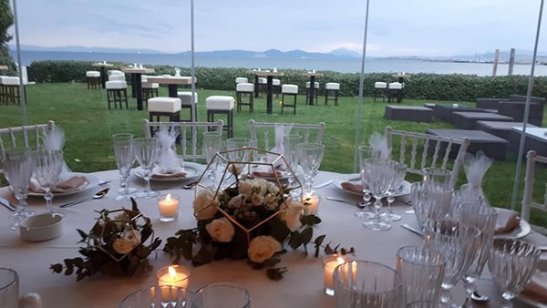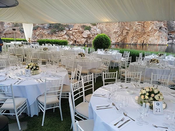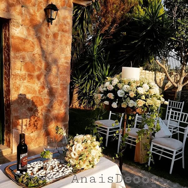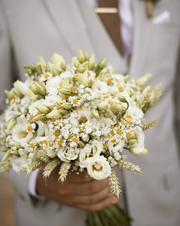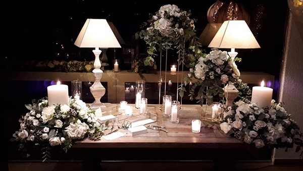 Φθινοπωρινός γάμος στο Κτήμα Κλεοπάτρα με λευκά και γαλάζια λουλούδια | Ζωή & Κωνσταντίνος