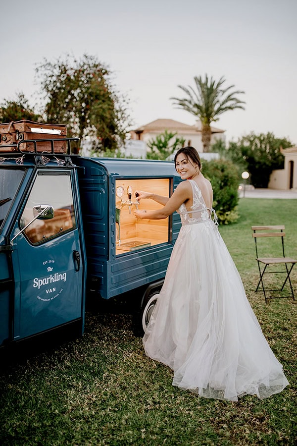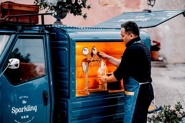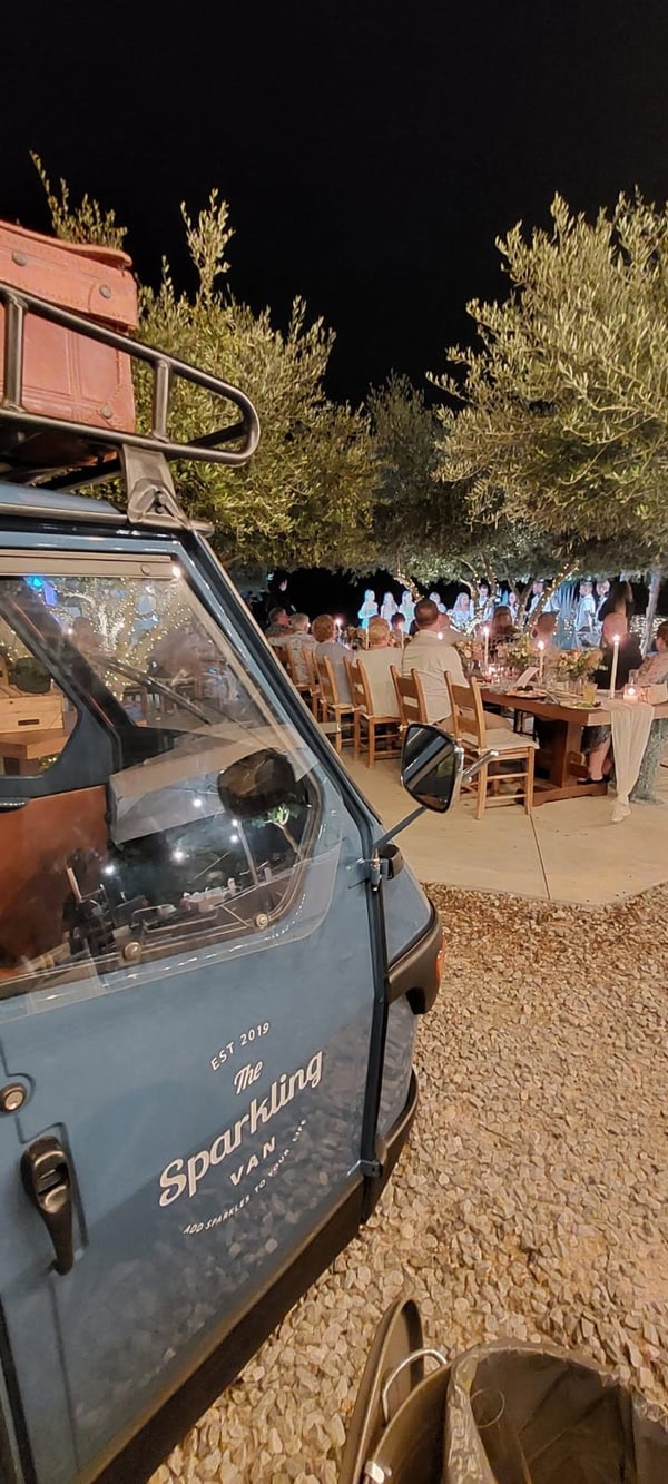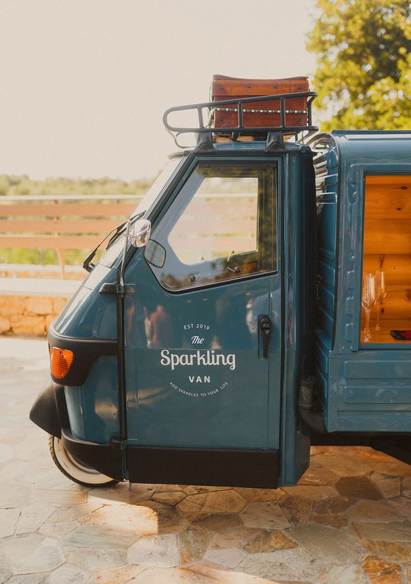 Το Sparkling Van είναι ενα τρίκυκλο κινητό όχημα Piaggio Ape με βιντατζ χαρακτηριστικά εποχής ερχόμενο από την Ιταλία. Ταξίδεψε από την Πίζα εως τα μαγευτικά Χανιά και είναι διαθέσιμο σ’εσάς προσφέροντας τις υπηρεσίες του ως ένα καλαίσθητο “κινητό μπάρ”σε οποιοδήποτε μέρος όπου εσείς επιθυμείτε. Oι καλεσμένοι σας θα μπορούν να απολαύσουν το ποτό τους από το δικό μας μοναδικό “κινητό μπαρ” της πόλης οπουδήποτε και σε οποιαδήποτε εκδήλωση εσείς επιθυμείτε να παρευρισκόμαστε εκεί μαζί σας, αφού το Sparkling Van γίνεται μέρος της δικής σας διασκέδασης και εμπειρίας. Μια εμπειρία σίγουρα για όσους διαθέτουν στυλ και άποψη. Ως κινητό μπαρ το Sparkling Van μπορεί να παρευρεθεί μαζί σας σε γάμους, βαφτίσεις, πάρτι ή ακόμα και σε επαγγελματικές/εταιρικές εκδηλώσεις προσφέροντας σ’εσάς και στους καλεσμένους σας ιδιαίτερα κεράσματα όπως prosecco και μπύρα από 3 διαφορετικές κάνουλες. Το Sparkling Van είναι η απόλυτη πινελιά στυλ που απογειώνει κάθε event. Για εσάς που θέλετε κάτι διαφορετικό, εντυπωσιακό και γεμάτο προσωπικότητα, το Sparkling Van γίνεται η εμπειρία που δεν περνά ποτέ απαρατήρητη!