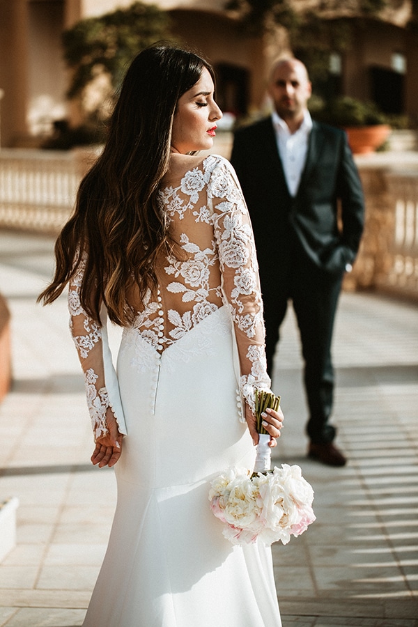 Σήμερα μεταφερόμαστε στην Πάφο της Κύπρου, όπου η Nilofar και ο Κυριάκος πραγματοποίησαν το γάμο των ονείρων τους. Το ερωτευμένο ζευγάρι αποφάσισε να παντρευτεί με πολιτικό γάμο στο αμφιθέατρο του ξενοδοχείο μια όμορφη ανοιξιάτικη μέρα. Οι καλεσμένοι καθισμένοι στα σκαλιά του αμφιθεάτρου, παρακολουθούσαν την ιδιαίτερη τελετή και απολάμβαναν το υπέροχα στολισμένο σκηνικό. Ακολούθησε το δείπνο και το πάρτυ στο ball room του ξενοδοχείου, το οποίο ξεχείλιζε ρομαντισμό και κομψότητα. Κρυστάλλινες λεπτομέρειες, καθρέπτες, κεριά και πλούσιες ανθοσυνθέσεις φρέσκων λουλουδιών έφτιαχναν το ιδανικότερο αποτέλεσμα.