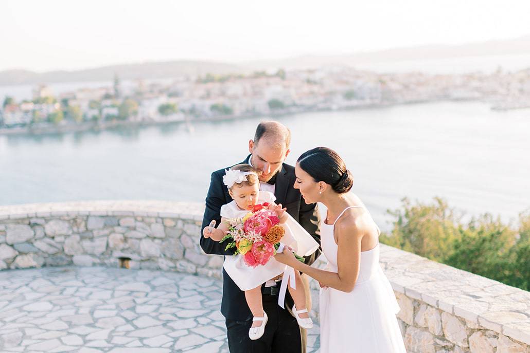 Η Μαρίνα και ο Γιώργος επέλεξαν να γιορτάσουν την όμορφη μέρα του γάμου τους μαζί με τη βάπτιση της κόρης τους και οι υπέροχες φωτογραφίες του Christou Mavragani μας μεταφέρουν όλα τα έντονα συναισθήματά της μεγάλης μέρας! Το ερωτευμένο ζευγάρι επέλεξε πανέμορφες συνθέσεις λουλουδιών σε έντονες αποχρώσεις του πορτοκαλί, φούξια και κίτρινου για τη διακόσμηση του γάμου τους με τα στέφανά τους από Laka Luka να σηματοδοτούν με τον πιο όμορφο τρόπο το νέο τους ξεκίνημα. Ξεχωρίσαμε την νυφική εμφάνιση της Μαρίνας, η οποία επέλεξε ένα υπέροχο αέρινο νυφικό φόρεμα από Atelier Solo Victoria που ταίριαξε απόλυτα στην ίδια, χαρίζοντας της μοναδική κομψότητα. Η χαρά και η συγκίνηση είναι εμφανής στα πρόσωπά τους όταν κράτησαν στα χέρια τους τη νεοφώτιστη κορούλα τους, χαρίζοντάς μας μοναδικά στιγμιότυπα. Ακολούθησε μια υπέροχη δεξίωση όπου γιόρτασαν αυτή την διπλή χαρά μαζί με όλα τα αγαπημένα τους πρόσωπα. Δείτε αυτή την υπέροχη μέρα μέσα από τις πιο κάτω φωτογραφίες!