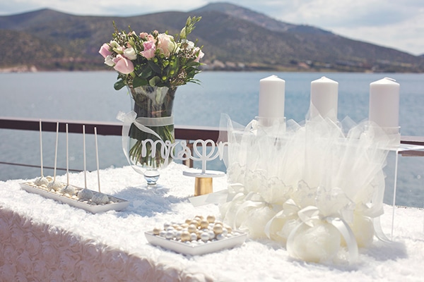 Η Style Concept μοιράστηκε μαζί αυτές τις υπέροχες ιδέες για ρομαντικό γάμο και περιγράφει: “Σε ένα από τα ωραιότερα μέρη της Αθηναικής Ριβιέρας με άπλετη θέα στην καταγάλανη θάλασσα, δημιουργήσαμε το σκηνικό για αυτό τον απόλυτα κομψό γάμο. Η αρχική ιδέα ήταν να δημιουργηθεί ένα εντυπωσιακό ντεκόρ με όμορφες λεπτομέρειες που να δένει με το φυσικό τοπίο. Έτσι λοιπόν προχωρήσαμε σε ψηλά centerpieces με πλούσιες ανθοσυνθέσεις από david austin τριαντάφυλλα, λυσίανθους και ορχιδέες συνοδευόμενα από μικρές συνθέσεις στη βάση. Κρατήσαμε τις ίδιες ποικιλίες λουλουδιών για όλες τις συνθέσεις και τα μπουκέτα που στόλισαν τον χώρο και το υπέροχο τραπέζι ευχών με το απέριττο αλλά ποιοτικό περιεχόμενο. Για να ντύσουμε τα τραπέζια χρησιμοποιήσαμε ροζ λινά τραπεζομάντηλα & πετσέτες, ποτήρια σε τόνους του μελιού, σουπλά με χρυσή μπορντούρα και χρυσά μαχαιροπηρούνα. Τα δαντελένια πουγγιά μπομπονιέρες με τα περλέ κουφέτα, τα ψηλά κηροπήγια και τα κεριά που πλαισίωσαν το χώρο συμπλήρωσαν την εικόνα δημιουργώντας ένα άψογο αποτέλεσμα που απογειώθηκε από το εξαιρετικό service και το πολυτελές και χαλαρωτικό περιβάλλον του resort”.
