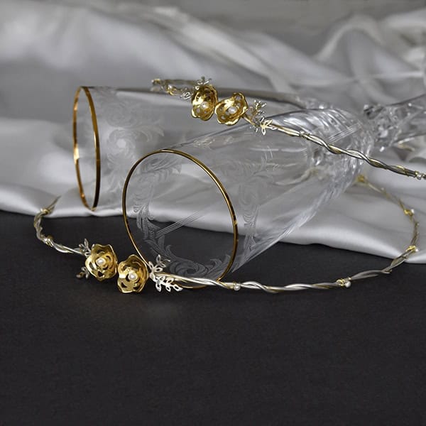 Η Δέσποινα Ρηγάκη, σχεδιάστρια και δημιουργός των κοσμημάτων D.R.’s Creations, με εχέγγυα τις γνώσεις και την ευρηματική της φαντασία, παρουσιάζει ιδιαίτερες σειρές στεφάνων γάμου σηματοδοτώντας με τον ομορφότερο τρόπο την αρχή της κοινής ζωής του ζευγαριού! Η εμπειρία της και η υψηλή αισθητική που την ακολουθούν από το χώρο του κοσμήματος επηρεάζουν σε μεγάλο βαθμό τις δημιουργίες της μεταμορφώνοντας κάθε σχέδιο στεφάνων σε κόσμημα υψηλών προδιαγραφών. Στέφανα μοντέρνα, στέφανα ρομαντικά, στέφανα αριστοκρατικά, όλα σε τέλεια αρμονία κομψότητας κι αισθητικής.