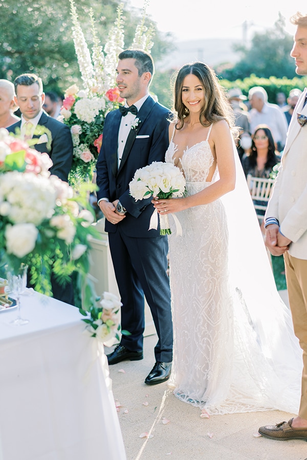Το υπέροχο love story της Μίνας και του Πάνου εκτυλίσσεται μέσα από τις ξεχωριστές φωτογραφικές λήψεις του Christos Mavraganis κι εμείς ανυπομονούμε να απολαύσουμε μαζί σας το κάθε στιγμιότυπο τους. Το λαμπερό ζευγάρι επέλεξε τους καταπράσινους κήπους του Κτήματος Ορίζοντες και το γραφικό εκκλησάκι που δεσπόζει στο χώρο για να επισφραγίσει τον έρωτα του, εμπλουτίζοντας την κάθε γωνιά με εκπληκτικές συνθέσεις από παιώνιες, ντάλιες, λυσίανθο κι άλλα επίλεκτα λουλούδια σε φωτεινές αποχρώσεις του coral, κίτρινου, λευκού και απαλού ροζ. Η Μίνα, wedding planner από Focus on City Celebrations, πιο ευτυχισμένη από ποτέ φθάνει στην εκκλησία, επιλέγοντας ένα στενό νυφικό φόρεμα που αναδεικνύει την ομορφιά της, ενώ το ίδιο κομψός είναι και ο Πάνος με το navy blue κοστούμι από Papadogamvros, περιμένοντας μπροστά από μια πλούσια λουλουδένια αψίδα! To ίδιο χαρούμενο σκηνικό επικρατεί και στην γαμήλια δεξίωση, εκεί όπου το Δειπνοσοφιστήριον Catering για ακόμη μια φορά επιλέγει τα πιο γευστικά πιάτα, προσφέροντας σε φίλους και καλεσμένους ένα μοναδικό γευστικό ταξίδι. Don’t miss this lovely wedding!