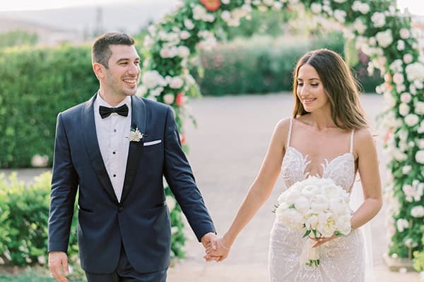Το υπέροχο love story της Μίνας και του Πάνου εκτυλίσσεται μέσα από τις ξεχωριστές φωτογραφικές λήψεις του Christos Mavraganis κι εμείς ανυπομονούμε να απολαύσουμε μαζί σας το κάθε στιγμιότυπο τους. Το λαμπερό ζευγάρι επέλεξε τους καταπράσινους κήπους του Κτήματος Ορίζοντες και το γραφικό εκκλησάκι που δεσπόζει στο χώρο για να επισφραγίσει τον έρωτα του, εμπλουτίζοντας την κάθε γωνιά με εκπληκτικές συνθέσεις από παιώνιες, ντάλιες, λυσίανθο κι άλλα επίλεκτα λουλούδια σε φωτεινές αποχρώσεις του coral, κίτρινου, λευκού και απαλού ροζ. Η Μίνα, wedding planner από Focus on City Celebrations, πιο ευτυχισμένη από ποτέ φθάνει στην εκκλησία, επιλέγοντας ένα στενό νυφικό φόρεμα που αναδεικνύει την ομορφιά της, ενώ το ίδιο κομψός είναι και ο Πάνος με το navy blue κοστούμι από Papadogamvros, περιμένοντας μπροστά από μια πλούσια λουλουδένια αψίδα! To ίδιο χαρούμενο σκηνικό επικρατεί και στην γαμήλια δεξίωση, εκεί όπου το Δειπνοσοφιστήριον Catering για ακόμη μια φορά επιλέγει τα πιο γευστικά πιάτα, προσφέροντας σε φίλους και καλεσμένους ένα μοναδικό γευστικό ταξίδι. Don’t miss this lovely wedding!