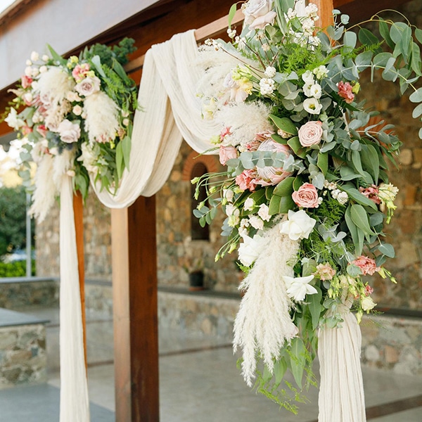 Καλοκαιρινός γάμος με λευκές ανθοσυνθέσεις και χρυσές λεπτομέρειες | Έυα & Νεοπτόλεμος