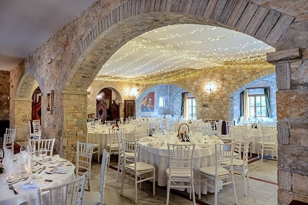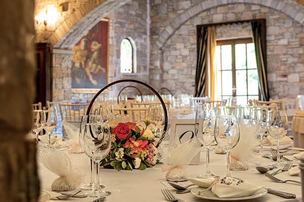 Οι χώροι επιλέγονται και διαμορφώνονται ανάλογα με το είδος της εκδήλωσης και καλύπτουν όλες τις απαιτήσεις για κάθε εποχή. Η πέτρα και το ξύλο έχουν τον κύριο λόγο στον εσωτερικό χώρο, με τα συλλεκτικά αντικείμενα και τα χειροποίητα χαλιά να δίνουν την απαραίτητη δόση πολυτέλειας. Το ατμοσφαιρικό κελλάρι, με τα εκθέματα σχετικά με την οινοποίηση και την αμπελουργία, το μπαρ οινογνωσίας και το μοναστηριακό τραπέζι, αποπνέει τη γαλήνια αύρα της παλαίωσης των κρασιών. Εξωτερικά, ο υπέροχος κήπος με φόντο το λιθόκτιστο κτίριο και ο ειδυλλιακός φωτισμός συνθέτουν ένα ρομαντικό σκηνικό για αξέχαστες μεθυστικές βραδιές.