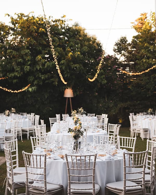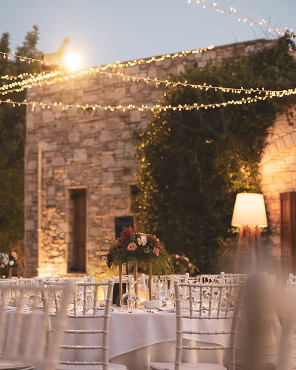 Η υψηλή ποιότητα της οργάνωσης, ο επαγγελματισμός και η ευχάριστη διάθεση των ανθρώπων του κτήματος, αποτελούν τα κύρια στοιχεία για την ιδανική εκδήλωση. Οι αποκλειστικές συνεργασίες του κτήματος με καταξιωμένους επαγγελματίες στον χώρο των εκδηλώσεων εξασφαλίζουν ένα μοναδικό πάντρεμα γεύσεων και μουσικής για μια άρτια δεξίωση. Το κτήμα περιτριγυρίζεται από γραφικά ξωκλήσια των Μεσογείων, αλλά και μεγαλύτερες κεντρικές εκκλησίες, δίνοντας πολλές επιλογές για την πραγματοποίηση του μυστηρίου του γάμου ή της βάπτισης.Η μόνιμη ηχητική εγκατάσταση δεν προσβάλλει την αισθητική των χώρων, ενώ σε περίπτωση διακοπής ηλεκτροδότησης, η ηλεκτρογεννήτρια αυτόματα υπερκαλύπτει ολόκληρη τη ροή της εκδήλωσης.