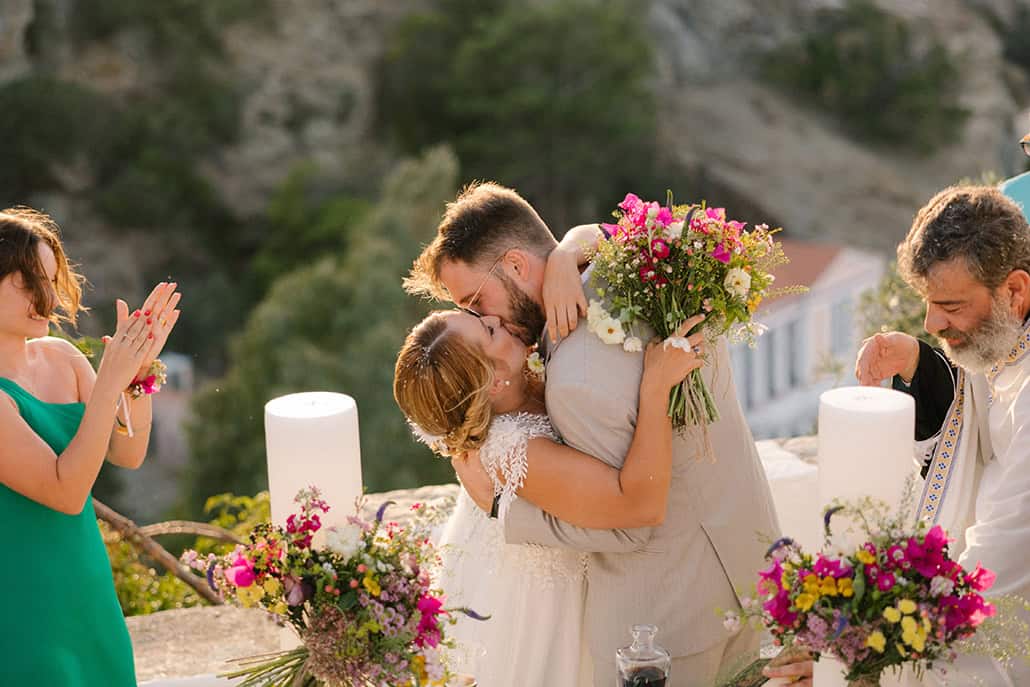 Ο κυκλαδίτικος αέρας της Τζιάς δίνει μια ανάλαφρη διάθεση στο γάμο της Kat & George που αποφασίζουν να επισφραγίσουν τον έρωτά τους σε ένα γραφικό γαλανόλευκο ξωκλήσι. Το ζευγάρι εμπιστεύεται την Sparkling Day και τo Filanthi Floral Design που συνεργάζονται άψογα σε αυτό το event χαρίζοντάς τους το γάμο που πάντα ονειρευόντουσαν. Μια λιτή υπαίθρια τελετή γάμου με μπουκετάκια από λουλούδια του αγρού στα καθίσματα των καλεσμένων, ένα ολάνθιστο καμπαναριό από μπουκαμβίλιες και πρασινάδες και μια νυφική ανθοδέσμη από χαμομήλι, φούξια μπουκαμβίλια και άλλα υπέροχα άνθη ταιριάζουν απόλυτα με το σκηνικό και η νύφη μοιράζεται μαζί μας «Αγαπημένη μου στιγμή ήταν την ώρα της τελετής με τα πανέμορφα χρώματα του ηλιοβασιλέματος, γυρνώντας πίσω και βλέποντας όλους τους δικούς μας ανθρώπους να γιορτάζουν μαζί μας!». Το ζευγάρι φαίνεται τόσο αγαπημένο και δεν θα μπορούσαμε να φανταστούμε πιο όμορφο σκηνικό από αυτό που είχαν στο γαμήλιο πάρτι τους, μια cozy έπαυλη με φόντο την φύση και με κίτρινες μαργαρίτες σε μπουκάλια να ομορφαίνουν τα τραπέζια, ο γάμος τους κλείνει με τον πιο όμορφο τρόπο παρασύροντάς μας με την υπέροχη καλοκαιρινή του διάθεση!