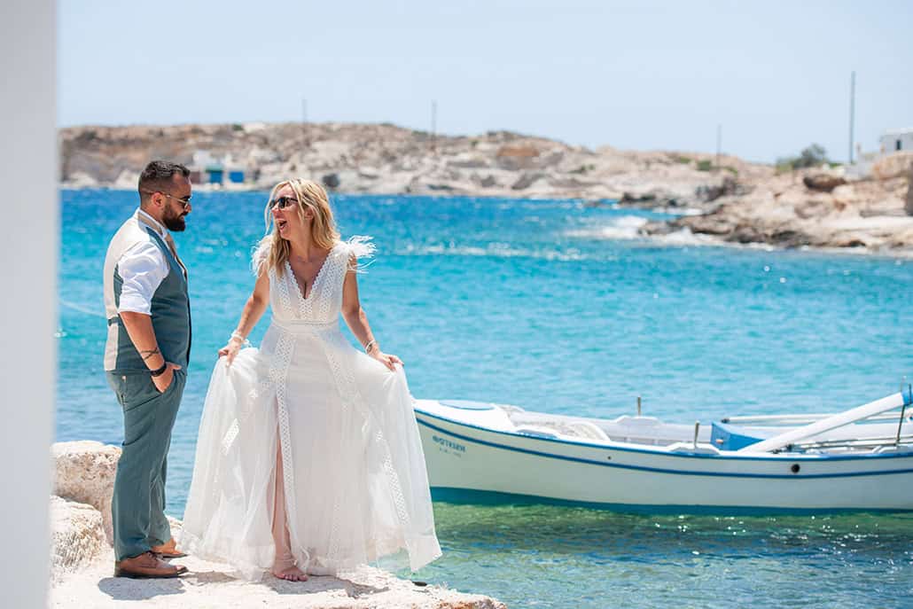 Πόσο λατρεύουμε τους ρομαντικούς γάμους σε νησί και ο γάμος που παρουσιάζουμε σήμερα στην πανέμορφη Κίμωλο δεν αποτελεί εξαίρεση! Ο Ventouris Photography μας μεταφέρει αυτόν τον ιδιαίτερο νησιώτικο αέρα του γάμου τους, καταγράφοντας κάθε ξεχωριστή στιγμή τους και εμείς λατρέψαμε το αποτέλεσμα. H νύφη επιλέγει ένα ανάλαφρο νυφικό φόρεμα και υπέροχα πέδιλα από Panos Papadopoulos Shoe Designer για την εμφάνισή της και υπό τη συνοδεία των βιολιών καταφθάνει στην εκκλησία. Τόσο λιτή μα συνάμα τόσο ρομαντική είναι η τελετή του γάμου τους με μπουκετάκια από στάχυα να στολίζουν τις λαμπάδες και ένα νυφικό μπουκέτο από αμάραντα, λυσίανθο και κρασπέδια να δίνει μια χαρούμενη νότα στο σκηνικό, ενώ τα υπέροχα προσκλητήρια επιμελίθηκε το Typo. Τα στιγμιότυπα από τις τρυφερές ματιές τους μα και το next day shoot τους με φόντο την καταγάλανη θάλασσα είναι τόσο μαγευτικά και εμείς τους ευχόμαστε «Βίον Ανθόσπαρτον»!