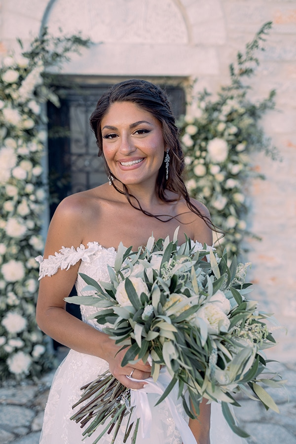 Καλοκαιρινός γάμος στη Μάνη με ολόλευκα τριαντάφυλλα και φύλλα ελιάς | Μαρία & Πέτρος