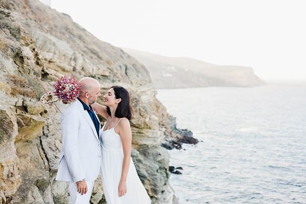 Έναν γάμο simple chic αλλά με πολύ ενθουσιασμό και αγάπη πραγματοποιήσαν η Μαρία και ο Νίκος. Το ζευγάρι, με την συνοδεία των δυο κουμπάρων τους και μόνο, επέλεξε την πανέμορφη Σίφνο και το μικρό εκκλησάκι των επτά μαρτύρων, με θέα που κόβει κυριολεκτικά την ανάσα, για να επισημοποιήσει τη σχέση του, ενώ η υπέροχη διακόσμηση από Sifnos Events απογείωσε την ομορφιά του σκηνικού. Τα χρώματα του φούξια – λευκού και μωβ στόλισαν τόσο την ανθοδέσμη όσο και το ανοιξιάτικο στεφάνι στα μαλλιά της νύφης, η οποία επέλεξε ένα ανάλαφρο – αέρινο look, που ταίριαζε κατάλληλα για γάμο σε νησί. «Όλη η μέρα του γάμου θα μας μείνει αξέχαστη. Ήμασταν τέσσερα άτομο σύνολο, εμείς και οι δύο κουμπάροι. Οπότε οι στιγμές ήταν όλες χωρίς άγχος και ανέμελες», μας εξομολογείται η Μαρία. Ο ομάδα της Mindart Photography δεν θα μπορούσε να απουσιάζει από αυτή την όμορφη μέρα, χαρίζοντας μας όλη την μαγεία που μπορεί να έχει ένας τέτοιος γάμος.