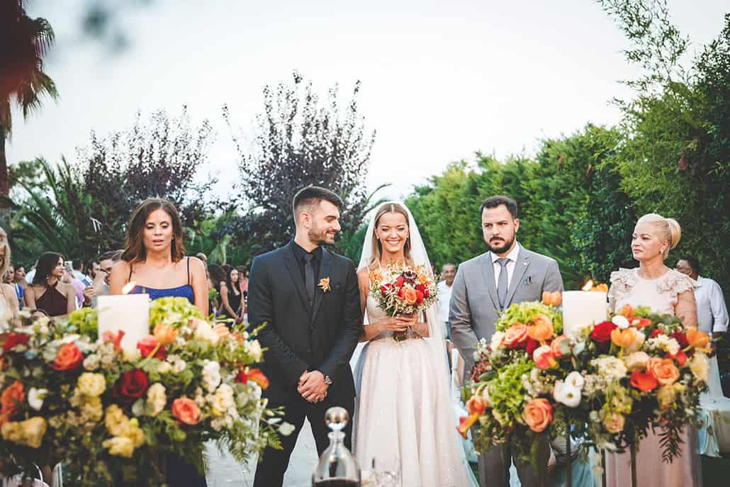 Ένας πλούσιος ανθοστολισμός από τριαντάφυλλα, κάλλες και τουλίπες στις πιο ζεστές αποχρώσεις του κοραλί και του κόκκινου δίνει το στίγμα του στον υπέροχο γάμο της Χριστίνας και του Νίκου που πραγματοποιήθηκε μια όμορφη φθινοπωρινή ημέρα στην Αθήνα. Οι υπέροχες ιδέες του Constantinos Decorations στη διακόσμηση εντυπωσιάζουν από μακριά τόσο στην τελετή όσο και στη δεξίωση του γάμου τους με την επιβλητική λουλουδένια αψίδα στην είσοδο της εκκλησίας να αποτελεί κεντρικό στοιχείο στις όμορφες φωτογραφίες του γάμου τους. Βέβαια η πρωταγωνίστρια αυτής της ημέρα φθάνει λίγο αργότερα φορώντας ένα sparkling νυφικό φόρεμα από τον οίκο νυφικών Primalicia Bridal Designers που την αναδεικνύει τόσο όμορφα με τις λεπτεπίλεπτες τιράντες, το στενό μπούστο και την αέρινη φούστα του και εκεί στα σκαλιά της εκκλησίας ο Νίκος της χαρίζει μια πανέμορφη νυφική ανθοδέσμη από πρωτέα, τριαντάφυλλα και κάλλες εκφράζοντας για ακόμη μια φορά την αγάπη και την αφοσίωση στη μέλλουσα γυναίκα του… Η υπέροχη τελετή του γάμου τους, η εντυπωσιακή είσοδός τους στο γαμήλιο πάρτι αλλά και ο εντυπωσιακός πρώτος χορός τους είναι μόνο κάποιες από τις στιγμές τους που μας ξύπνησαν τα πιο όμορφα συναισθήματα… Enjoy!