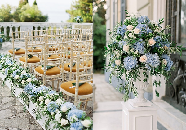 Ο γάμος του σημερινού ζευγαριού έχει μια τόσο ξεχωριστή διακόσμηση που θα σας καθηλώσει! Το ερωτευμένο ζευγάρι είναι πιο όμορφο από ποτέ και χαίρεται την κάθε στιγμή σε ένα υπέροχο σκηνικό που οργάνωσε το Belli Momenti. Κάτω από μια πανέμορφη λουλουδένια αψίδα με κλαδιά ελιάς, γαλάζιες ορτανσίες και λευκά garden roses δίνουν υπόσχεση για αιώνια αγάπη ενώ ένα εντυπωσιακό setting τους περιμένει στη δεξίωση του γάμου τους που ξεχειλίζει από κομψότητα και ρομαντισμό. Πλούσιες γιρλάντες λουλουδιών και κεριά στολίζουν τα τραπέζια ενώ silver πινελιές, ένα luxurious tableware με μοντέρνα tablecloths κάνουν αυτό το δείπνο ακόμη πιο ξεχωριστό. Μεταφερθείτε στην όμορφη Κέρκυρα μέσα από τις πιο κάτω φωτογραφίες!