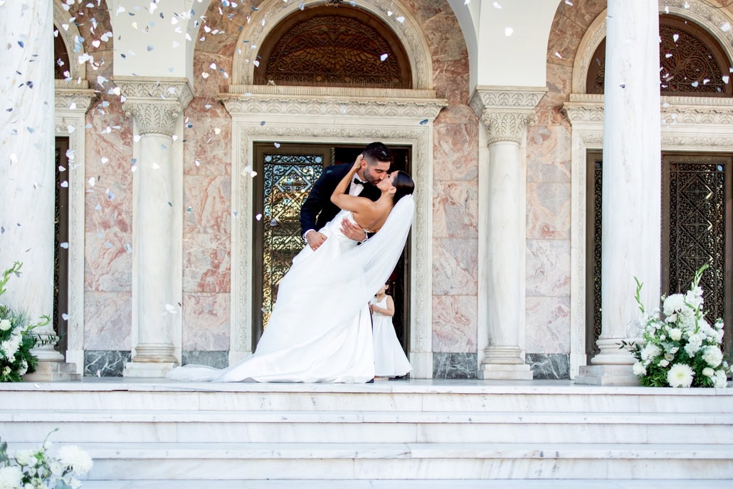 Στην Πάτρα μάς μεταφέρει ο υπέροχος γάμος του Γεράσιμου και της Κωνσταντίνας Μαρίας, μια μέρα που ξεχωρίζει χάρη στο ρομαντικό της ύφος και την ανεπανάληπτη πρόταση γάμου στο Ντουμπάι, στο Burj Khalifa, που αποτέλεσε την αφετηρία της κοινής τους πορείας. Ο φακός του Takis Fousekis αποτυπώνει με μοναδικό τρόπο την ατμόσφαιρα, αναδεικνύοντας το εξαιρετικό σκηνικό της δεξίωσης με το μακρύ λευκό τραπέζι στολισμένο με πλούσιες συνθέσεις από λευκά τριαντάφυλλα, χρυσάνθεμα, ορτανσίες και ευκάλυπτο, ενώ τα κομψά κεριά και οι κρυστάλλινοι πολυέλαιοι ολοκληρώνουν την μαγευτική εικόνα. Η Κωνσταντίνα Μαρία επιλέγει ένα αριστοκρατικό γοργονέ σύνολο από τον οίκο Primalicia Bridal Designers, φτιαγμένο από τούλι και κεντημένο με πούλιες, συνδυασμένο με coverdress από σατέν, και όπως μας εκμυστηρεύεται η ίδια: «Ένα νυφικό είδαν τα μάτια μου με το που επισκέφτηκα τον οίκο νυφικών Primalicia, ένα δοκίμασα… και ένα πήρα! Δεν το πίστευε κανένας. Ήταν λες και είχε ραφτεί από κάποιον που του είχα εξομολογηθεί τις σκέψεις μου». Όταν φτάνει στην εκκλησία, όπως αναφέρει η νύφη, ο Γεράσιμος την αντικρίζει με χαρά και βαθιά συγκίνηση, ψιθυρίζοντάς της πως δεν έχει ξαναδεί πιο όμορφη νύφη, μια στιγμή που σφραγίζει με τον πιο τρυφερό τρόπο την ονειρεμένη αρχή της κοινής τους ζωής!