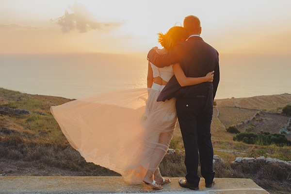 “Ο γάμος μας έγινε φθινόπωρο, στο νησί της γιαγιά μου, στον Ιερό Ναό Αγίου Παντελεήμονα στην Φολέγανδρο. Διαλέξαμε αυτό το ξωκλήσι για την υπέροχη θέα του. Μπορεί να κάναμε 20λεπτη πεζοπορία μέχρι να φτάσουμε αλλά η όλη διαδρομή άξιζε και το ηλιοβασίλεμα σίγουρα ανταπέδωσε!”