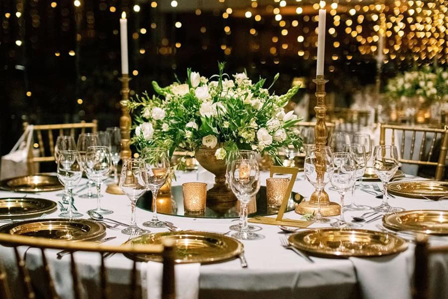 Το χρυσό χρώμα είναι άμεσα συνδεδεμένο με την πολυτέλεια και την κομψότητα και αποτελεί την ιδανική επιλογή για τα ζευγάρια που επιθυμούν ένα elegant σκηνικό για τη μεγάλη μέρα του γάμου τους. To χρυσό θα ταίριαζε απόλυτα στο στολισμό ενός luxurious γάμου σε πολυτελή αίθουσα ξενοδοχείου αλλά θα μπορούσε να δώσει κομψότητα και πολυτέλεια σε οποιονδήποτε γάμο χρησιμοποιώντας το στις διακοσμητικές λεπτομέρειες της μεγάλης μέρας.