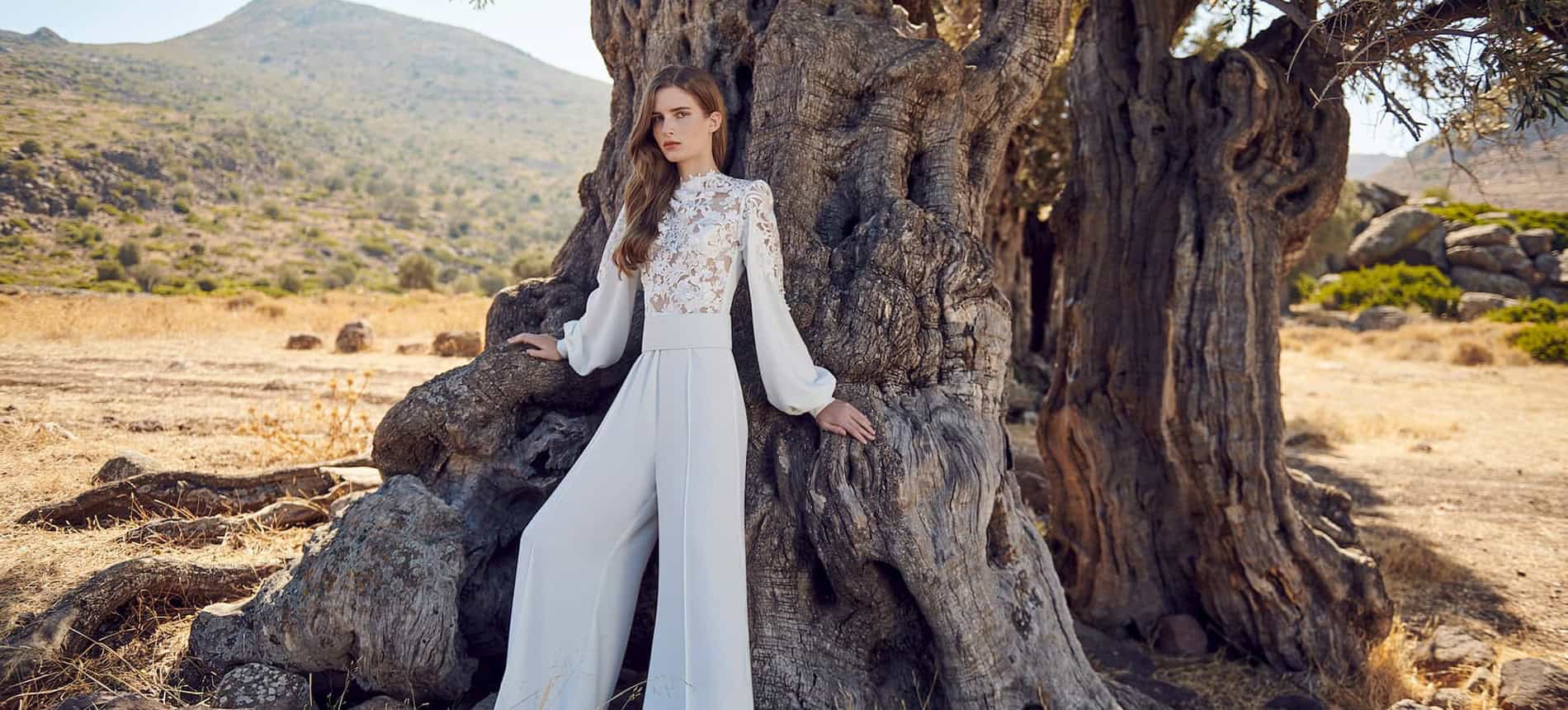 Alkmini Atelier πρωτότυπο μοντέρνο νυφικό φόρεμα – παντελόνι, για μια νύφη που θέλει να εντυπωσιάσει και να πρωτοτυπήσει με την εμφάνισή της ...