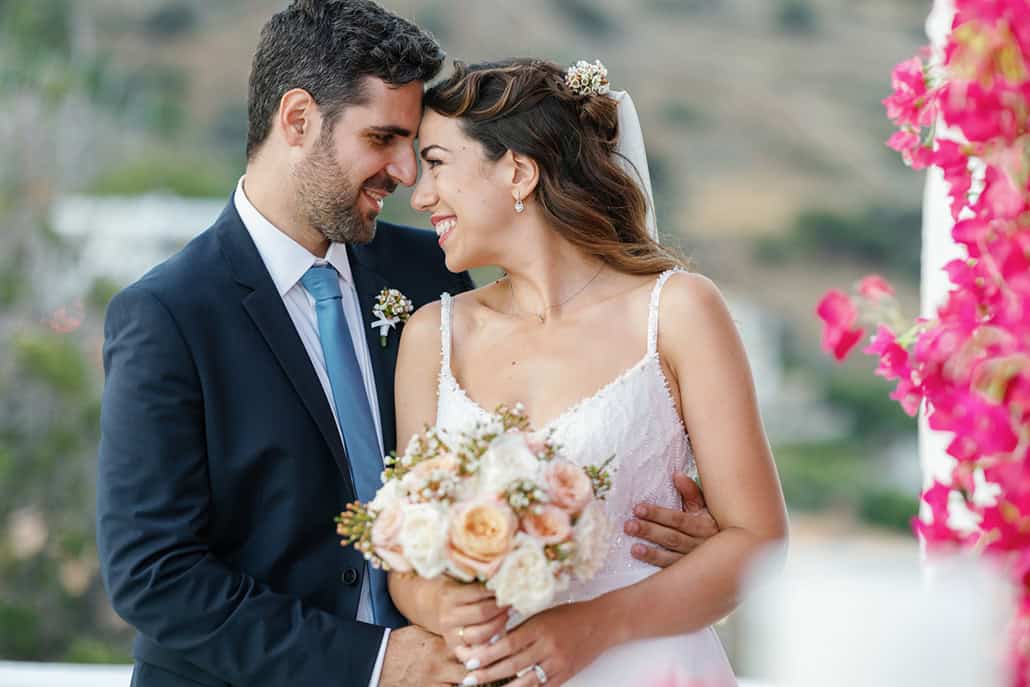 Υπέροχες εικόνες με άρωμα καλοκαιριού έχουμε την δυνατότητα να απολαύσουμε μέσα από τις μοναδικές φωτογραφικές λήψεις του Nian Photography που μοιράζεται μαζί μας από τον γάμο της Μικαέλας και του Ηλίας στην Άνδρο στον υπέροχο χώρο του Kourtesis Wine Estate. Το ζευγάρι γιόρτασε την αγάπη του σε ένα σκηνικό γεμάτο φούξια βουκαμβίλιες τόσο στη γαμήλια τελετή με τον Ηλία με υπέροχο blue navy δίκουμπο κοστούμι του από Vardas το οποίο συνδύασε με μια γαλάζια μεταξωτή γραβάτα, να περιμένει με μεγάλη χαρά τη γυναίκα της ζωής του στα σκαλιά της εκκλησίας, ενώ στην γαμήλια δεξίωση το ζευγάρι επέλεξε έντονα χρώματα δίνοντας την ρομαντική νότα που ονειρεύονταν στην διακόσμηση όλα επιμελημένα τόσο όμορφα από το Ineventive!