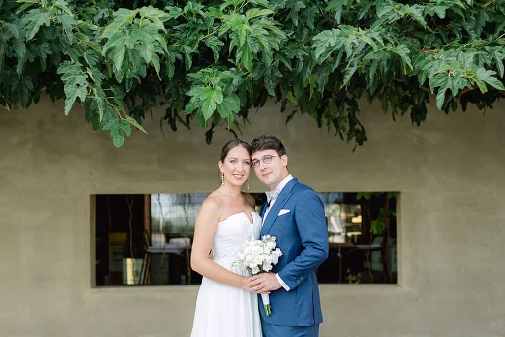 «Γνωριστήκαμε στο Βερολίνο μέσω κοινής φίλης. Η πρόταση γάμου έγινε ένα βράδυ στο ferry boat “Γλυκοφιλούσα” ενώ περνούσαμε από το Αντίρριο στο Ρίο.», μοιράστηκε μαζί μας η νύφη.