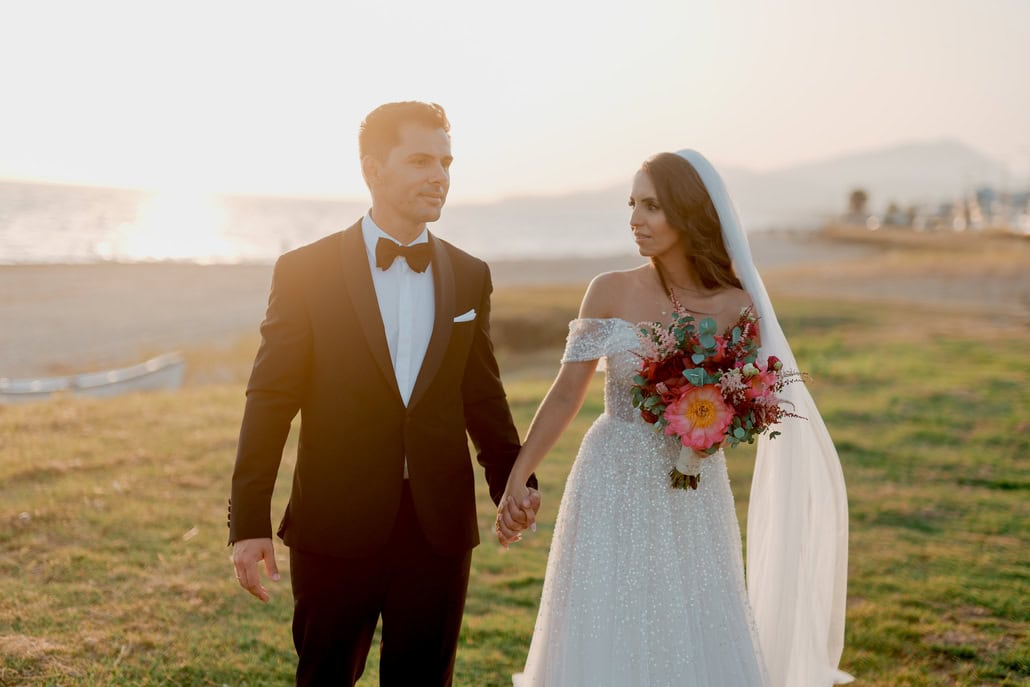 Η Δανάη και ο Χρήστος γνωρίστηκαν ως παιδικοί φίλοι και η σχέση τους εξελίχθηκε με τον πιο όμορφο τρόπο σε μια δυνατή αγάπη που επισφραγίστηκε με έναν ονειρικό γάμο στο γραφικό Κανάλι Πρέβεζας. Το ζευγάρι επέλεξε έναν πολύχρωμο ρομαντικό στολισμό που έκλεψε τις εντυπώσεις, με μια εντυπωσιακή αψίδα στην είσοδο της εκκλησίας, διακοσμημένη με κοραλί ορτανσίες, ιβουάρ τριαντάφυλλα και φρέσκο ευκάλυπτο σε θερμές αποχρώσεις του πορτοκαλί. Η μαγεία αυτής της ξεχωριστής ημέρας αποτυπώθηκε μοναδικά μέσα από τον φωτογραφικό φακό του Nikos Roussis, ο οποίος κατέγραψε κάθε τρυφερό βλέμμα και όλα τα αυθεντικά συναισθήματα που ξεδιπλώθηκαν κατά τη διάρκεια της τελετής και της δεξίωσης. Ελάτε να ζήσουμε μαζί την πιο όμορφη μέρα τους!