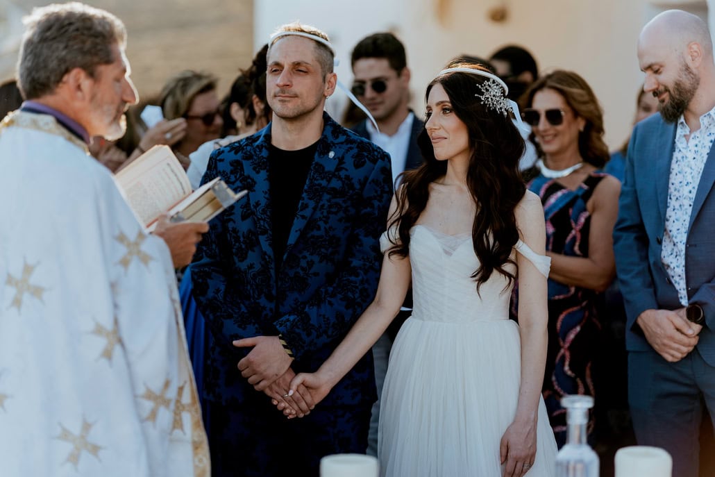Ο καλοκαιρινός γάμος της Λυδίας και του Κωνσταντίνου στη Σέριφο κερδίζει αμέσως το ενδιαφέρον με τον ιδιαίτερο χαρακτήρα του και την καλλιτεχνική ταυτότητα του ζευγαριού, την οποία ανέδειξε με ξεχωριστό τρόπο η Koumpares. Στην πιο δημοφιλή παραλία του νησιού, η Λυδία κρατά μια πρωτότυπη ανθοδέσμη από χαρτί, φτιαγμένη από την παρτιτούρα του αγαπημένου της τραγουδιού, ενώ στη δεξίωση τα παλιά βινύλια με τα συγκροτήματα που αγαπούν μετατρέπονται σε ξεχωριστές λεπτομέρειες διακόσμησης που αποκαλύπτουν τη σχέση τους με τη μουσική. Ακόμη και η μπομπονιέρα, μια πένα κιθάρας με χαραγμένα τα αρχικά τους, δένει όμορφα με αυτή τη δημιουργική ιστορία, που γίνεται ακόμη πιο ζωντανή μέσα από την εξομολόγηση της νύφης «Η αγαπημένη στιγμή του γάμου μας ήταν η συναυλία. Είμαστε και οι δύο καλλιτέχνες. Δεν υπήρχε περίπτωση να μην τραγουδήσουμε στον γάμο μας. Παίξαμε μουσική και τραγουδήσαμε με τους φίλους μας και για τους φίλους μας». Κάθε εικόνα μάς μεταφέρει στην ιδιαίτερη ενέργεια αυτής της μέρας και σας καλούμε να απολαύσετε κι εσείς την όμορφη ατμόσφαιρα!