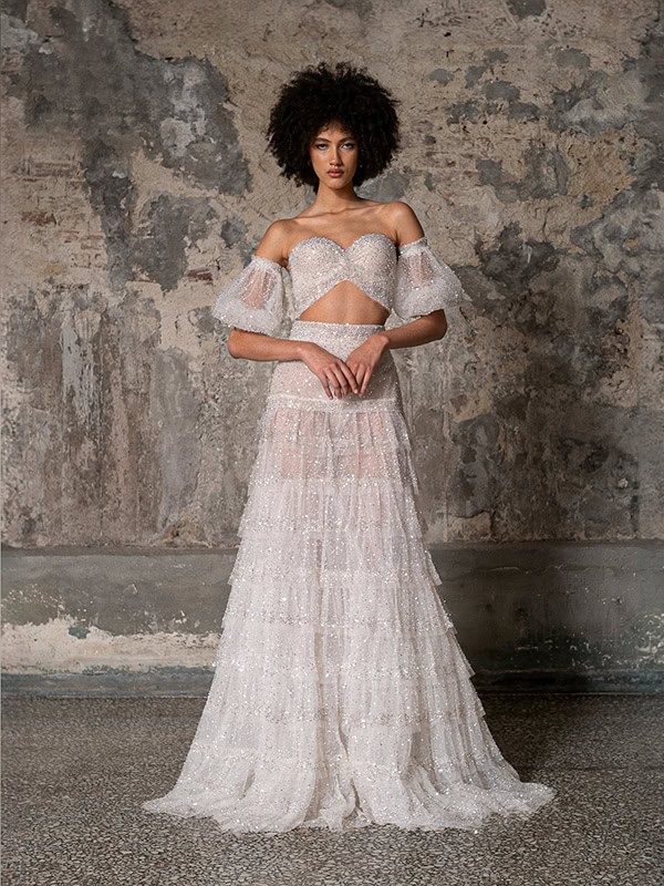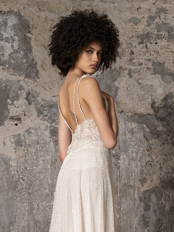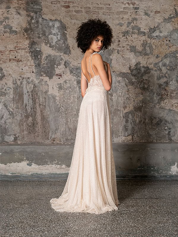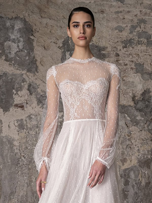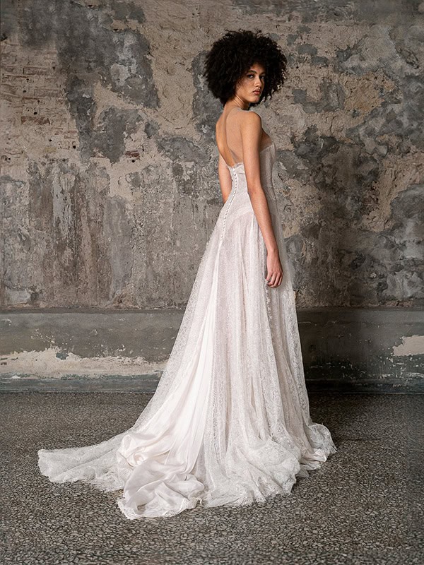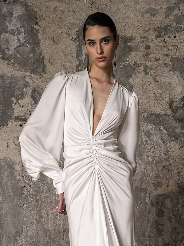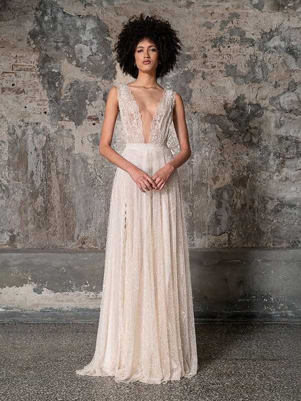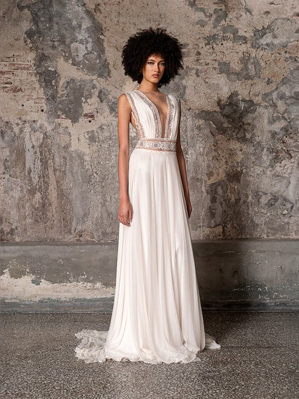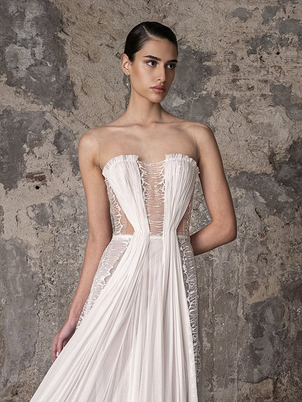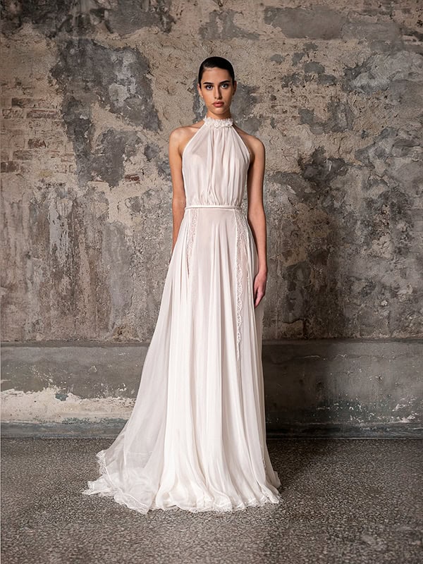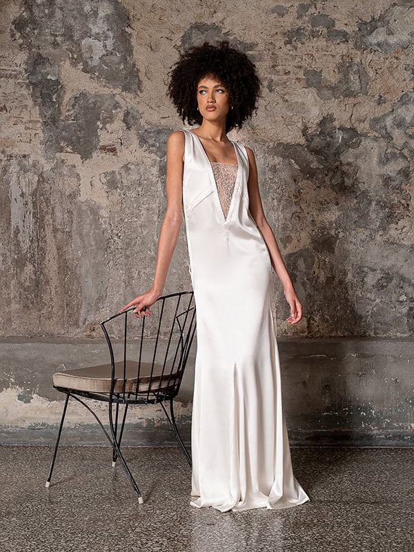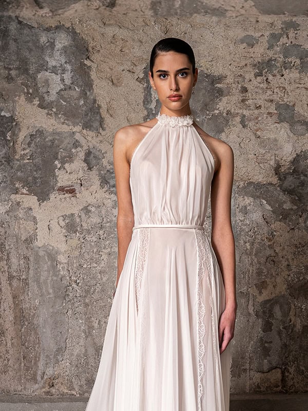 Τα νυφικά της Βάσιας Τζοτζοπούλου είναι elegant, αέρινα, θηλυκά. Καθαρές γραμμές, luxury υφάσματα που αγαπούν το γυναικείο σώμα. Μεταξωτά τούλια, γαλλικές δαντέλες (αποκλειστικά από τον οίκο Sophie Hallette Paris), χειροποίητες τρέσες – δεμένα αριστοτεχνικά -δημιουργούν γυναικείες φιγούρες που αποπνέουν έναν αιθέριο δυναμισμό.
