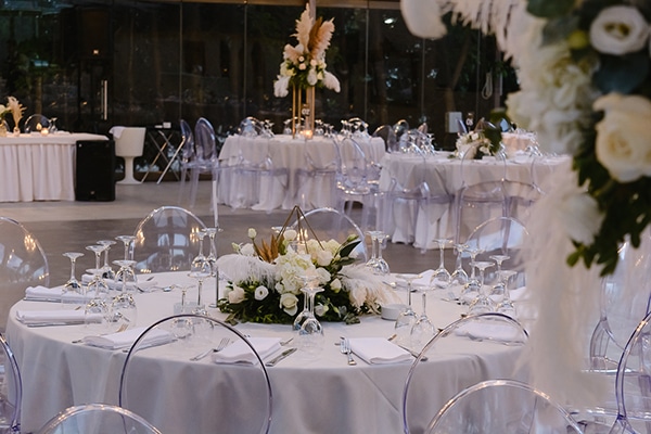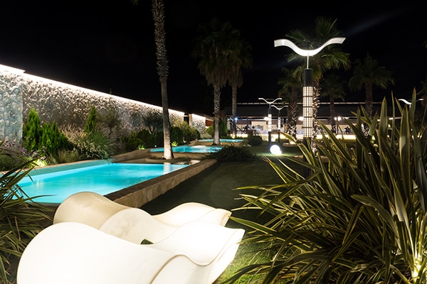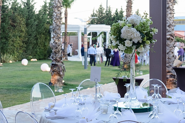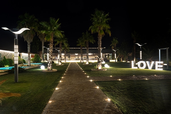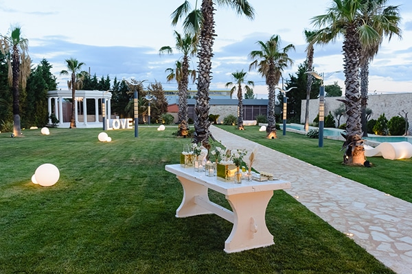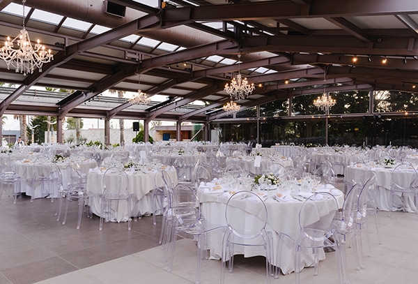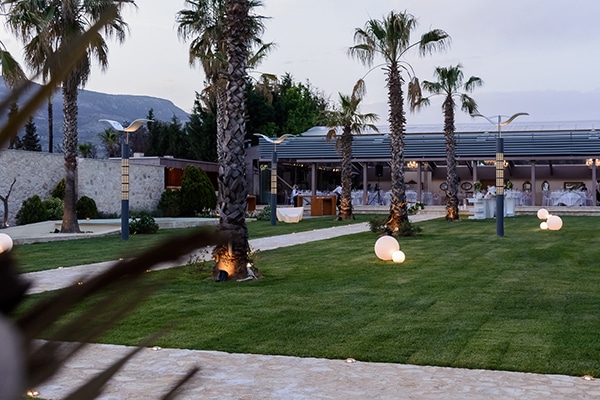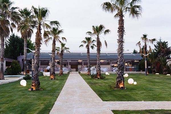 Στον μεγάλο εξωτερικό χώρο, με τους φοίνικες και τις επαγωγικές φωτιζόμενες πισίνες, οι καλεσμένοι έχουν την ευκαιρία να απολαύσουν το ποτό τους, ενώ στο περιστύλιο, με το ιδιαίτερο στυλ, τελούνται γάμοι και βαπτίσεις, συγκεντρώνοντας στο ίδιο μέρος όλη τη χαρά και τη συγκίνηση της ημέρας.