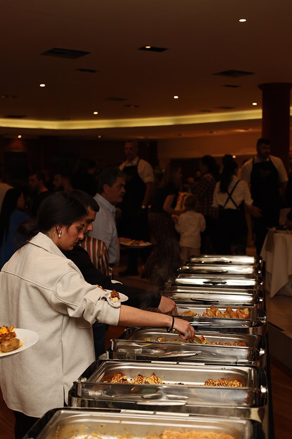 H γαστρονομική σας εμπειρία απογειώνεται με ένα προσεγμένο μενού που προσαρμόζεται στις προτιμήσεις σας. Απολαύστε πλούσια ποικιλία εκλεκτών γεύσεων, με πιάτα φτιαγμένα από φρέσκα υλικά, σε ευφάνταστους συνδυασμούς, ενώ το live cooking experience προσθέτει μια ξεχωριστή πινελιά στη βραδιά σας. Οι καλεσμένοι σας θα εντυπωσιαστούν από τις αμέτρητες επιλογές σε γλυκά, που ολοκληρώνουν το γεύμα σας με τον πιο απολαυστικό τρόπο.