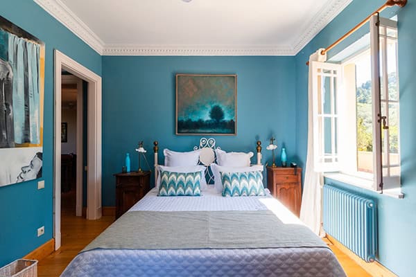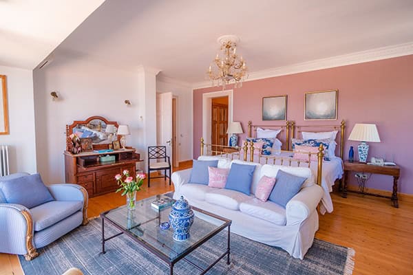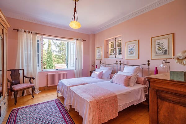 Στον πρώτο όροφο είναι μια μεγάλη σουίτα με κύριο υπνοδωμάτιο, όμορφα σχεδιασμένο μπάνιο με μια σπάνια μαρμάρινη μπανιέρα του 19ου αιώνα, βεστιάριο, γραφείο και δύο βεράντες. Επίσης στον πρώτο όροφο είναι δύο ακόμη υπνοδωμάτια, ένα με διπλό κρεβάτι και ένα με δύο μονά, το καθένα με το μπάνιο του και διακοσμημένα σε κομψό παραδοσιακό στιλ.