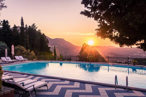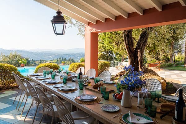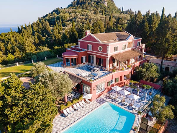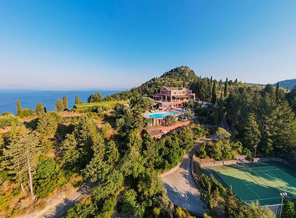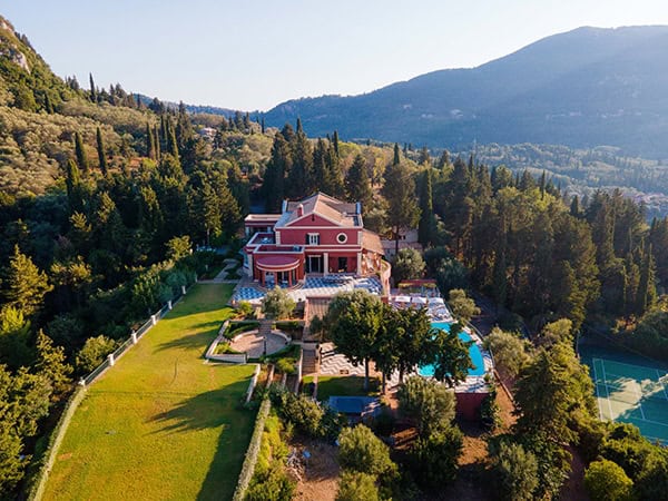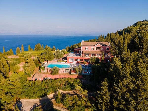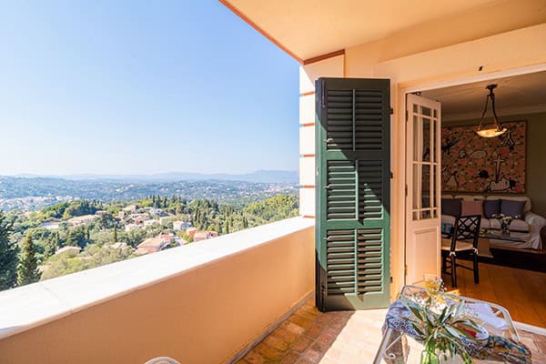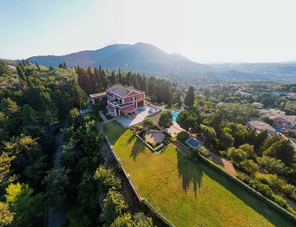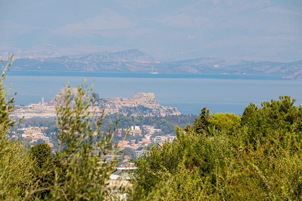Το κτήμα έχει εκπληκτική θέα 360 μοιρών στο Ιόνιο Πέλαγος, τα όμορφα χωριά, τους κυλιόμενους λόφους, τα πλούσια δάση και τα φρούρια της Κέρκυρας στο βάθος.