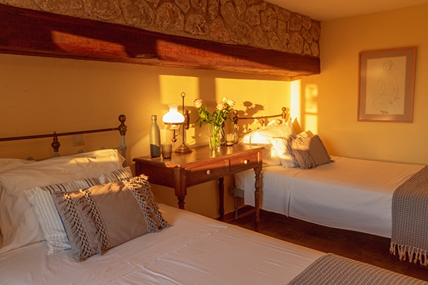 Ο εξωτερικός ξενώνας διαθέτει δύο ακόμη δίκλινα υπνοδωμάτια με τα μπάνια τους, καθιστικό με kitchenette και τη δική του βεράντα με υπέροχη θέα στο Γαστούρι.
