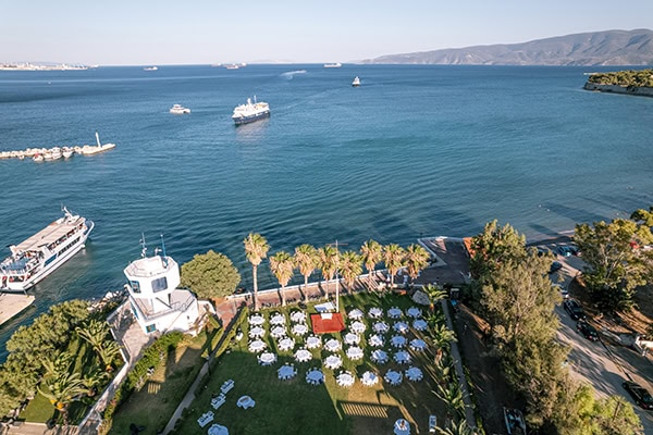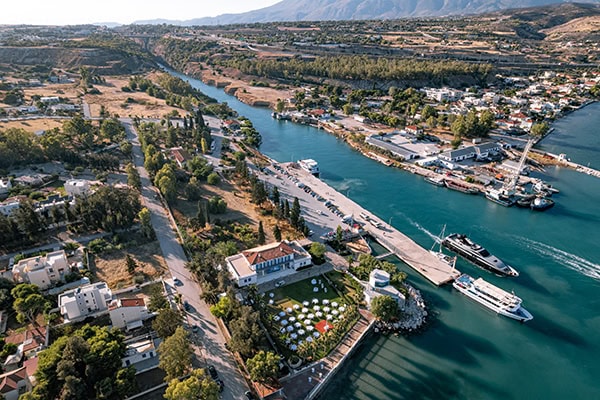 Ένας χώρος μοναδικής ομορφιάς, που συνδυάζει τη θέα στη θάλασσα του Σαρωνικού κόλπου με το μαγευτικό τοπίο της Διώρυγας, ο Κήπος Διώρυγας Κορίνθου προσφέρει το ιδανικό σκηνικό για την ομορφότερη ημέρα της ζωής σας. Από το εντυπωσιακό του μπαλκόνι, εσείς και οι καλεσμένοι σας μπορείτε να θαυμάσετε τη διέλευση πολυτελών σκαφών από και προς τον Ισθμό, ενώ το απέραντο γαλάζιο και οι μοναδικές αποχρώσεις του ηλιοβασιλέματος δημιουργούν μια ατμόσφαιρα ρομαντισμού και κομψότητας.