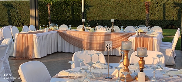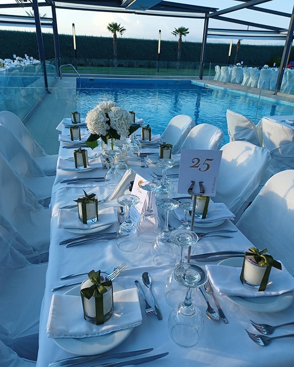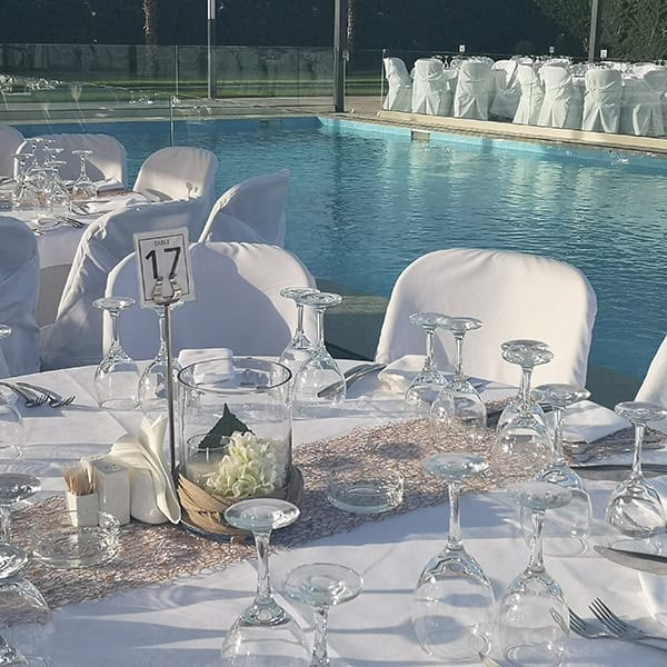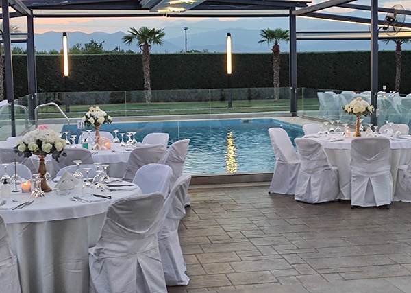 Ο υπέροχος εξωτερικός χώρος με την πισίνα είναι ιδανικός για να φιλοξενήσει από Απρίλιο μέχρι Νοέμβριο δεξιώσεις γάμων, βαπτίσεων, αρραβώνων, επαγγελματικές – εταιρικές εκδηλώσεις, χορούς και παιδικά party, με δυνατότητα προφύλαξης από κακές καιρικές συνθήκες, ενώ παράλληλα παρέχεται εσωτερική αίθουσα που είναι διαθέσιμη και σε λειτουργία όλο τον χρόνο.