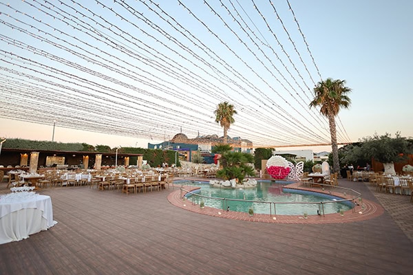 Σε έναν πανέμορφο και ανανεωμένο χώρο, το Κτήμα Pietris σας υποδέχεται υπέρλαμπρο, έτοιμο να φιλοξενήσει τις πιο σημαντικές στιγμές της ζωής σας. Ανεβαίνοντας τις επιβλητικές μαρμάρινες σκάλες, το θέαμα που αντικρίζει ο επισκέπτης κόβει την ανάσα: εξωτικά φοινικόδεντρα πλαισιώνουν τον χώρο σε συνδυασμό με αιωνόβια ελαιόδεντρα και πρασινάδες. Η εντυπωσιακή πισίνα χαρίζει αίσθηση δροσιάς και πολυτέλειας, ενώ καταπράσινοι κήποι αγκαλιάζουν το σκηνικό, δημιουργώντας έναν φυσικό καμβά υψηλής αισθητικής.