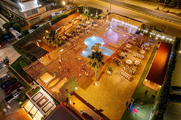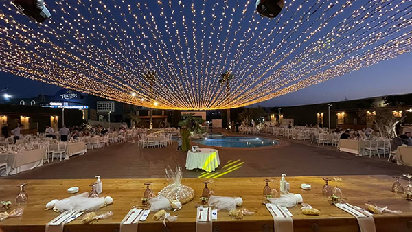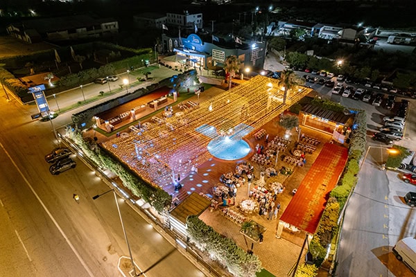 Καθώς η νύχτα πέφτει, το σκηνικό μεταμορφώνεται σε μια μαγευτική εικόνα: σαν μικρές πυγολαμπίδες, χιλιάδες λαμπάκια ανάβουν στον χώρο, χαρίζοντας μια ρομαντική, ονειρική ατμόσφαιρα. Η βραδιά σας γίνεται ένα παραμύθι—ένα αξέχαστο ταξίδι φωτός, γεύσης και συναισθημάτων, φτιαγμένο αποκλειστικά για εσάς!